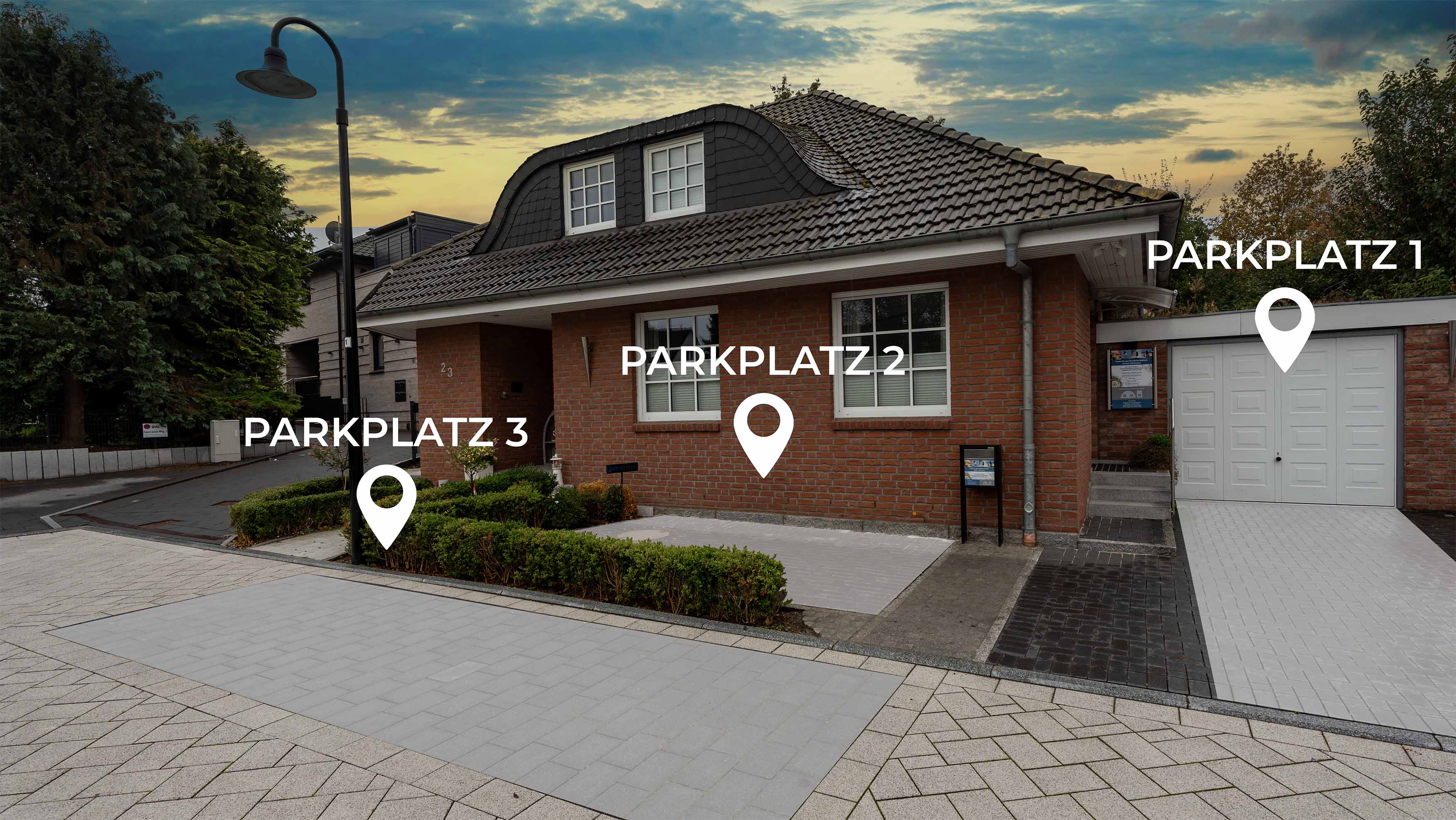 Es stehen mehrere Parkmöglichkeiten zur Verfügung: Ein großer Parkplatz befindet sich am Hamburger Ring. Direkt an der Praxis gibt es einen Parkplatz vor dem ersten weißen Garagentor, sowie einen weiteren für kleinere Autos direkt vor dem Haus. Zusätzlich sind zwei öffentlich zugängliche Parkplätze, die grau gekennzeichnet sind, in der Straße vorhanden.